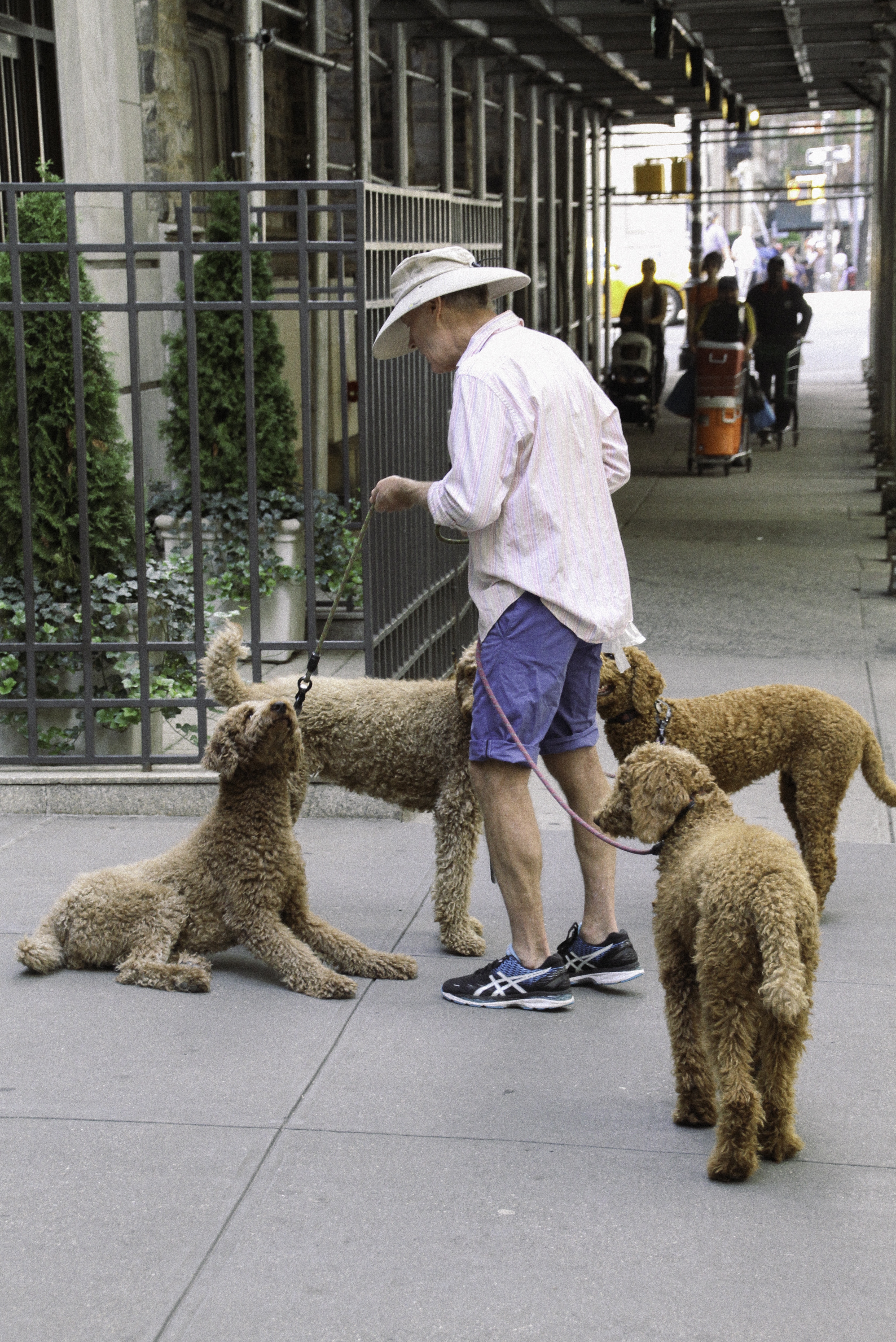 Man with four dogs